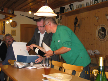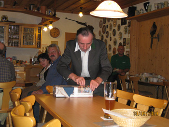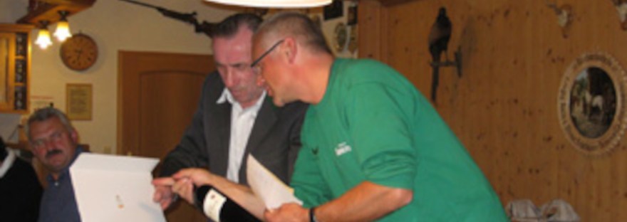 Claus Deim baute nach diesem Plan in seiner Freizeit einen rund 40 Kilo schweren Böller Kaliber 50,den er nun der Schützengesellschaft übergab. An Material wurden ungefähr 400 Euro investiert, doch „unbezahlbar ist die Arbeitszeit“, so Schützenmeister Kurt Endreß, der sich sehr über das Engagment Deims freute. Denn Claus Deim hat den Böller nicht nur selbst hergestellt, sondern auch noch beim Beschussamt in Mellrichstadt abnehmen lassen, so dass er nun zu Veranstaltungen, Hochzeiten und dergleichen eingesetzt werden kann.