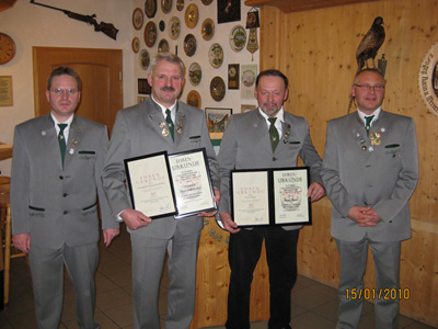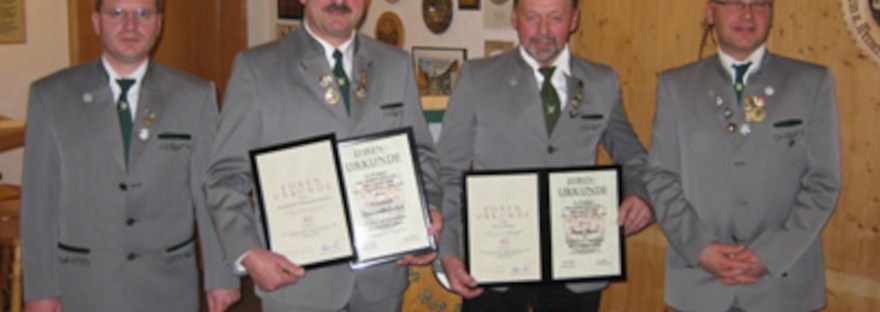 Beide halten der Schützengesellschaft Trautskirchen seit nunmehr 40 Jahren die Treue und durften denn auch mit berechtigtem Stolz die ehrenvolle Auszeichnung aus den Händen des ersten Schützenmeisters in Empfang nehmen.