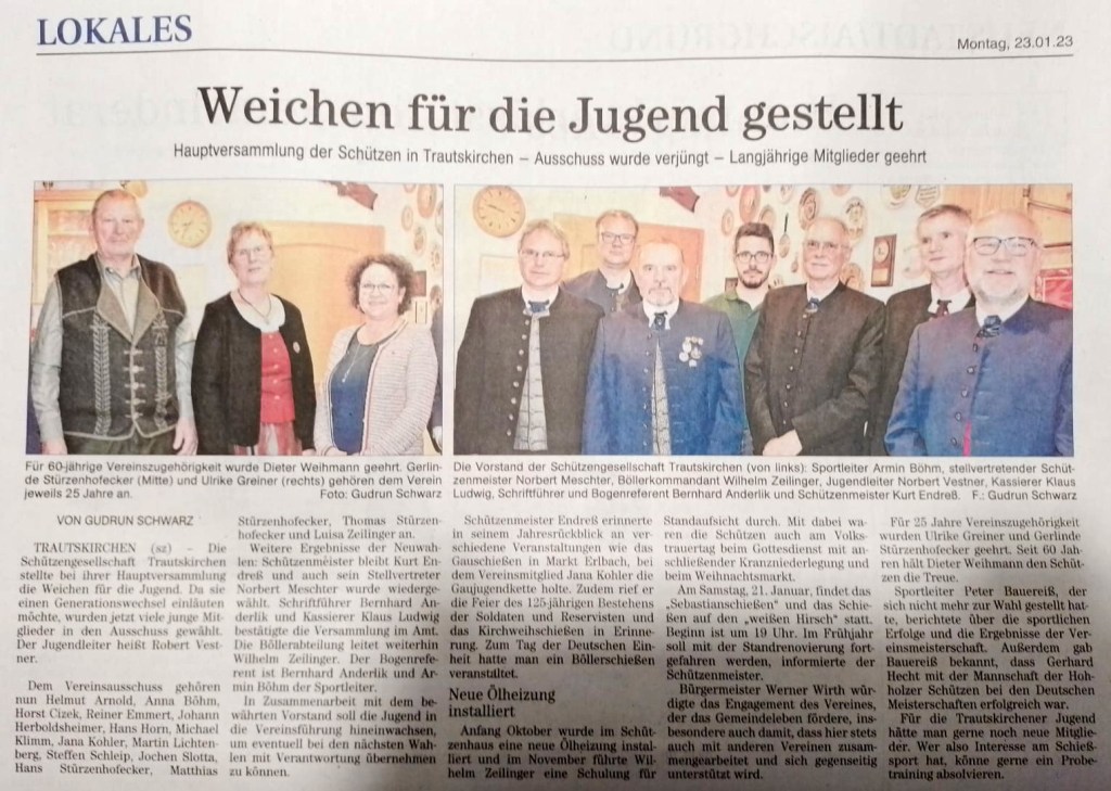 Am 21. Januar fand erstmals seit 2020 wieder ein Sebastianschießen statt. Bei der 18. Ausrichtung hatten 51 Teilnehmer den Weg nach Trautskirchen gefunden.