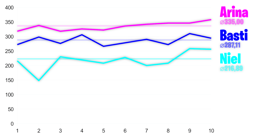 Durch regelmäßiges Training konnten alle ihre Ergebnisse in ihrer ersten Saison zunehmend steigern.
